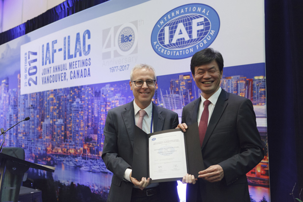 近日,在國際認(rèn)可論壇(IAF)和國際實驗室認(rèn)可合作組織(ILAC)2017年聯(lián)合年會上,中國合格評定國家認(rèn)可委員會(CNAS)秘書長肖建華代表CNAS與IAF簽署了信息安全管理體系多邊互認(rèn)協(xié)議,標(biāo)志著我國的信息安全管理體系認(rèn)證認(rèn)可制度正式加入IAF多邊互認(rèn)體系。